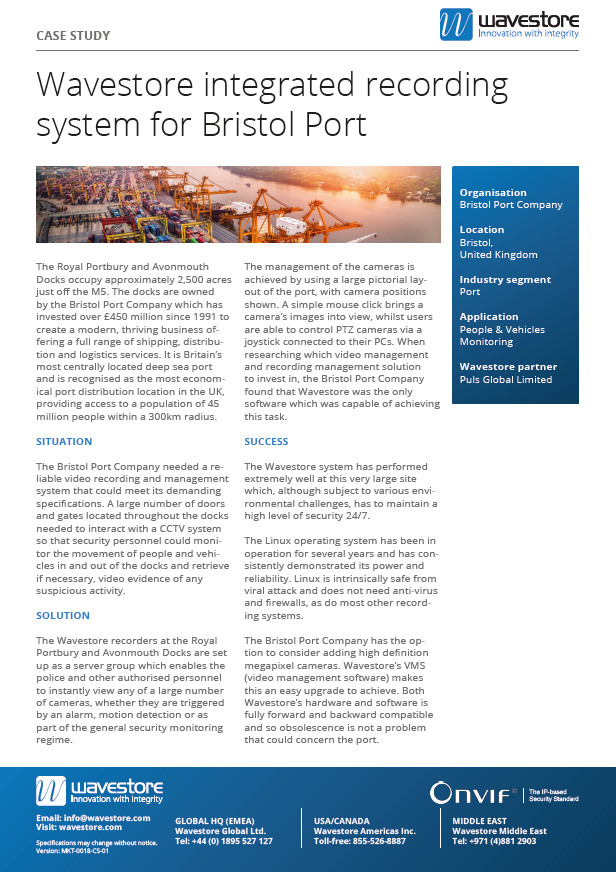 Wavestore integrated recording system for Bristol Port